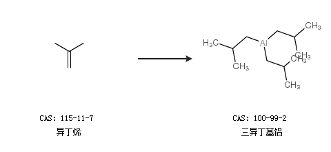 1.通过异丁烯合成三异丁基铝,收率约74%;