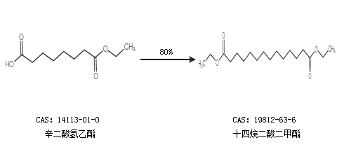 1.通过辛二酸氢乙酯合成十四烷二酸二甲酯,收率约80%;