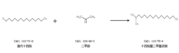 1.通过溴代十四烷和二甲胺合成十四烷基二甲基叔胺