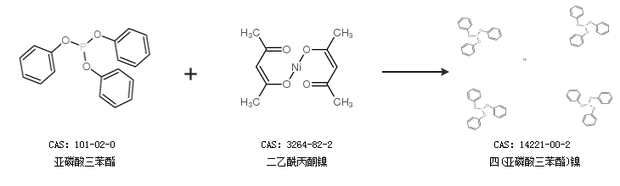 1.通过亚磷酸三苯酯和二乙酰丙酮镍合成四(亚磷酸三苯酯)镍