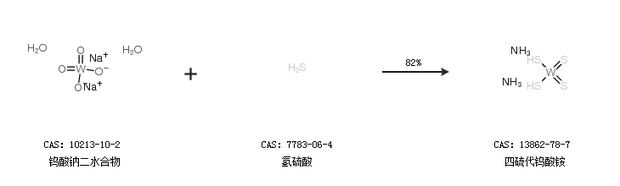 1.通过钨酸钠二水合物和氢硫酸合成四硫代钨酸铵,收率约82%;