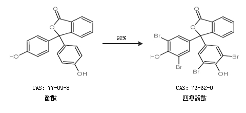 1.通过酚酞合成四溴酚酞,收率约92%;