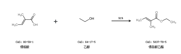 1.通过惕格酸和乙醇合成惕各酸乙酯,收率约91%;