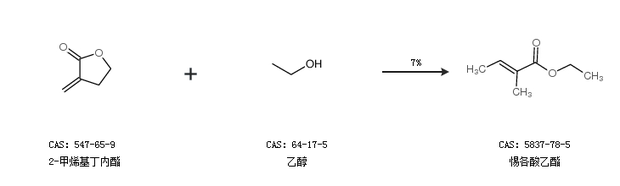 2.通过2-甲烯基丁内酯和乙醇合成惕各酸乙酯,收率约7%;