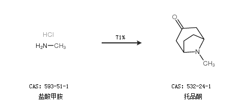2.通过盐酸甲胺合成托品酮,收率约71%;