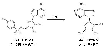 2.通过5’-对甲苯磺酸腺苷合成脱氧腺嘌呤核苷,收率约86%;