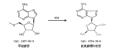 1.通过甲硫腺苷合成脱氧腺嘌呤核苷,收率约80%;