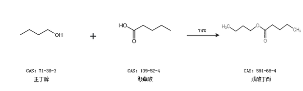 1.通过正丁醇和缬草酸合成戊酸丁酯,收率约74%;