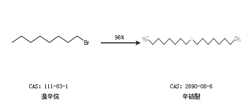 1.通过溴辛烷合成辛硫醚,收率约96%;