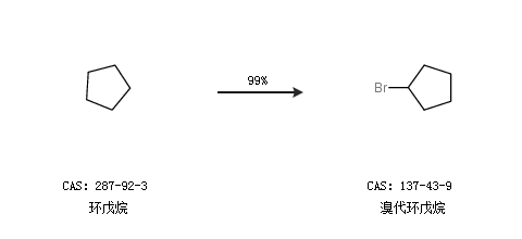 1.通过环戊烷合成溴代环戊烷,收率约99%;