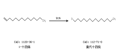 1.通过1-十四烯合成溴代十四烷,收率约91%;