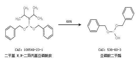 1.通过二苄基 N,N-二异丙基亚磷酰胺合成亚磷酸二苄酯,收率约68%;