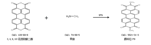 1.通过3,4,9,10-苝四羧酸二酐和甲胺合成颜料红179,收率约97%;