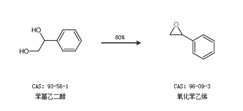 1.通过苯基乙二醇合成氧化苯乙烯,收率约80%;