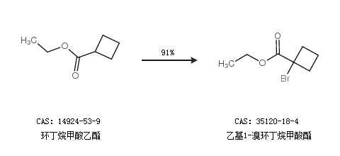 1.通过环丁烷甲酸乙酯合成乙基1-溴环丁烷甲酸酯,收率约91%;