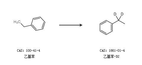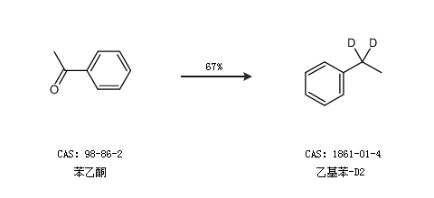 1.通过苯乙酮合成乙基苯-D2,收率约67%;