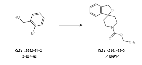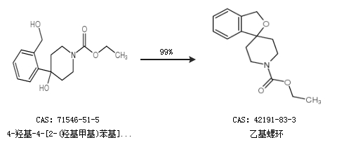 1.通过4-羟基-4-[2-(羟基甲基)苯基]-1-哌啶羧酸乙酯合成乙基螺环,收率约99%;