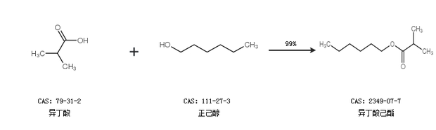1.通过异丁酸和正己醇合成异丁酸己酯,收率约99%;