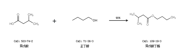 1.通过异戊酸和正丁醇合成异戊酸丁酯,收率约90%;