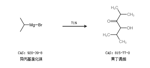 1.通过异丙基溴化镁合成異丁偶姻,收率约71%;