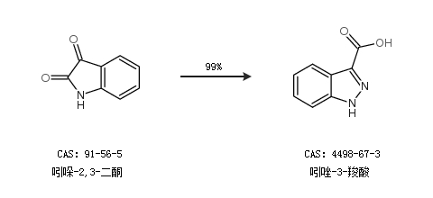 1.通过吲哚-2,3-二酮合成吲唑-3-羧酸,收率约99%;
