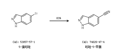1.通过5-溴吲唑合成吲唑-5-甲腈,收率约83%;