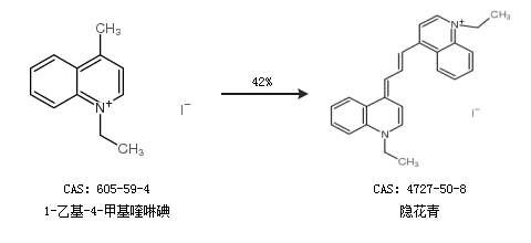 2.通过1-乙基-4-甲基喹啉碘合成隐花青,收率约42%;