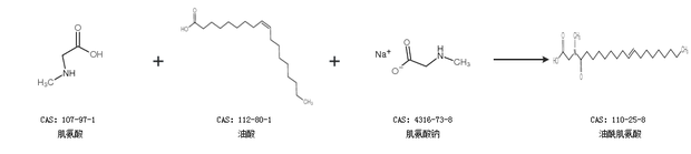1.通过肌氨酸、油酸和肌氨酸钠合成油酰肌氨酸