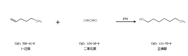 2.通过1-己烯和二氧化碳合成正庚醇,收率约67%;