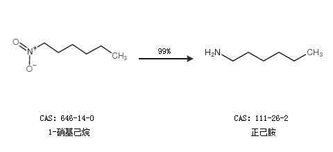 1.通过1-硝基己烷合成正己胺,收率约99%;