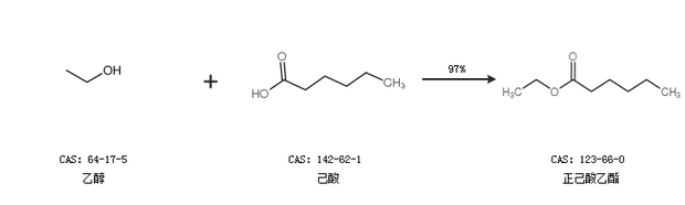 1.通过乙醇和己酸合成正己酸乙酯,收率约97%;