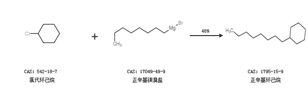 2.通过氯代环己烷和正辛基镁溴盐合成正辛基环己烷,收率约48%;