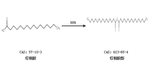 1.通过棕榈酸合成棕榈酸酐,收率约99%;