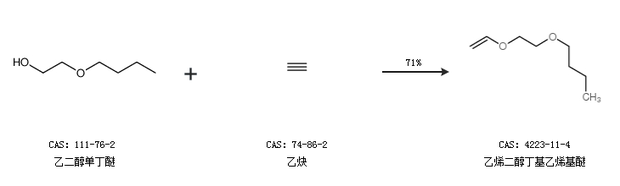 1.通过乙二醇单丁醚和乙炔合成乙烯二醇丁基乙烯基醚,收率约71%;