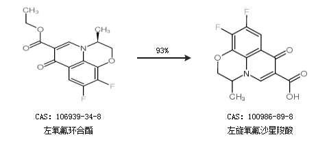 1.通过左氧氟环合酯合成左旋氧氟沙星羧酸,收率约93%;