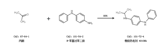 1.通过丙酮和N-苯基对苯二胺合成橡胶防老剂 4010NA,收率约88%;
