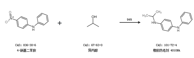 2.通过4-硝基二苯胺和异丙醇合成橡胶防老剂 4010NA,收率约94%;