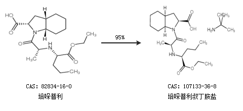 1.通过培哚普利合成培哚普利叔丁胺盐,收率约95%;