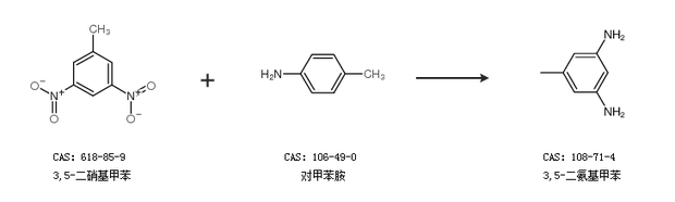 1.通过3,5-二硝基甲苯和对甲苯胺合成3,5-二氨基甲苯