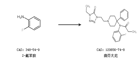 英文别名 n-{1-[2-(4-ethyl-5-oxo-4,5-dihydro-1h-tetrazol-1-yl)ethyl]-4-phenylpiperidin-4-yl}-n-(2-fluorophenyl)propanamide;1-[2-(4-ethyl-4,5-dihydro-5-oxo-1H-tetrazol-1-yl)ethyl]-4-phenyl-4-[N-(2-fluorophenyl)propionamido]piperidine;Trefentanil [INN];Trefentanil;