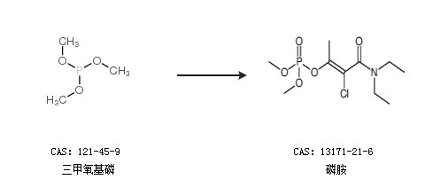 英文别名 2-chloro-3-(diethylamino)-1-methyl-3-oxo-1-propen-1-yl dimethyl phosphate;(EZ)-2-chloro-2-diethylcarbamoyl-1-methylvinyl dimethyl phosphate;PHOSPHAMIDON;(EZ)-2-chloro-3-dimethoxyphosphinoyloxy-N,N-diethylbut-2-enamide;(2Ξ)-3-chloro-4-(diethylamino)-4-oxobut-2-en-2-yl dimethyl phosphate;Phosphamidon;