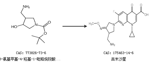 2.通过3-氨基甲基-4-羟基-1-吡咯烷羧酸-1,1-二甲基乙酯合成吉米沙星