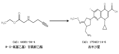 1.通过N-(2-氰基乙基) 甘氨酸乙酯合成吉米沙星