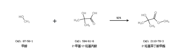 2.通过甲醇和2-甲基-2-羟基丙酸合成2-羟基异丁酸甲酯,收率约92%;
