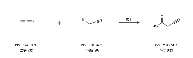 2.通过二氧化碳和3-溴丙炔合成3-丁炔酸,收率约52%;