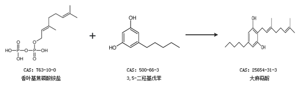 2.通过香叶基焦磷酸铵盐和3,5-二羟基戊苯合成大麻萜酚