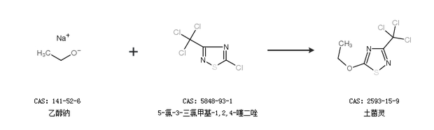 2.通过乙醇钠和5-氯-3-三氯甲基-1,2,4-噻二唑合成土菌灵