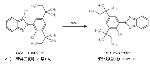 1.通过2-(2H-苯并三氮唑-2-基)-4,6-双(叔戊基)苯酚 N-氧化物合成紫外线吸收剂 THUV-328,收率约92%;