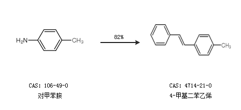1.通过对甲苯胺合成4-甲基二苯乙烯,收率约82%;