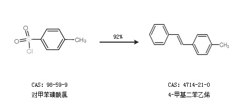 2.通过对甲苯磺酰氯合成4-甲基二苯乙烯,收率约92%;